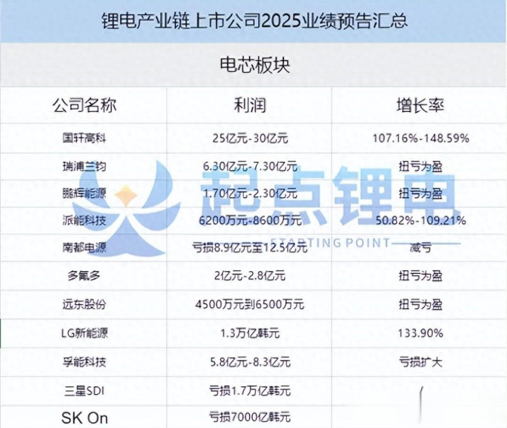 起点锂电获悉,近期有多家锂电产业链相关上市公司披露2025年业绩预告,其中以正极材料端居多,其扭亏为盈趋势明显。
